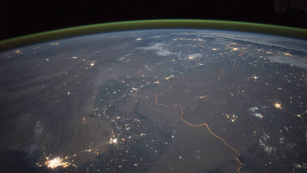 Aurora boreal y resplandor atmosférico (airglow en inglés) captados desde la Estación Espacial Internacional. NASA