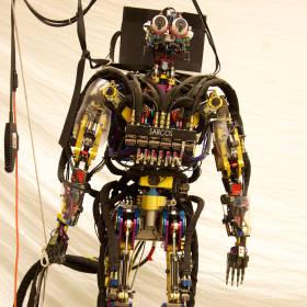 Capaz de equilibrarse por sí solo con un sistema hidráulico, SARCOS replica con extremada precisión y fluidez los movimientos que captura con sus cámaras. Su estabilidad impresiona: si recibe un empujón, el androide cambiará el paso como lo haría un humano para recuperar la verticalidad.